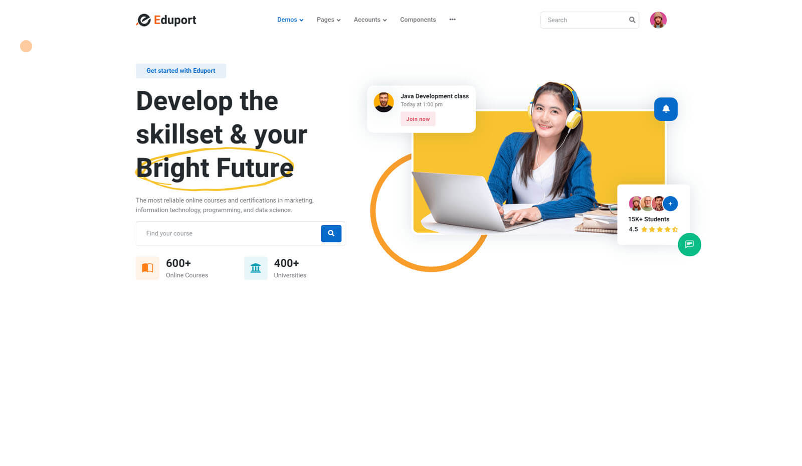 Eduport comes with many Hero(banner) styles. Click on below images to view design and code.