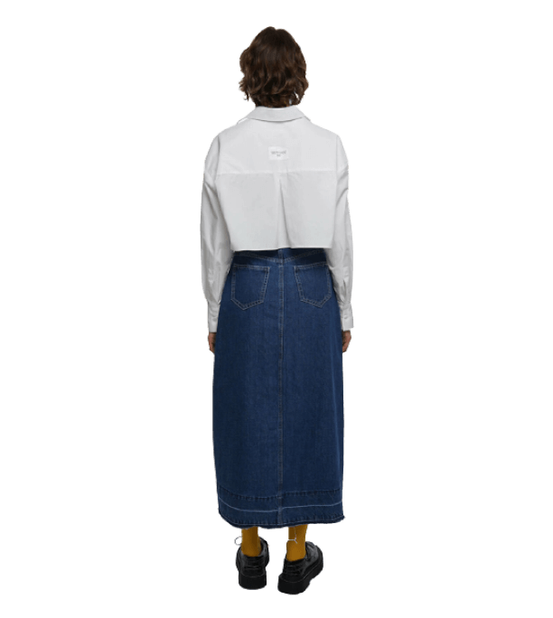 رنگ جین کلاسیک و طراحی همیشگی این دامن، ست کردن آن را با انواع تاپ، بلوز و کفش آسان می کند و به شما امکان می دهد مجموعه های شیک بی پایانی ایجاد کنید. فرقی نمیکند ظاهری آرام را با یک تی شرت و کفشهای کتانی گرافیکی ترجیح میدهید یا یک مجموعه شیکتر با بلوز و کفش پاشنهدار، این دامن بدون زحمت با استایل شما سازگار میشود.